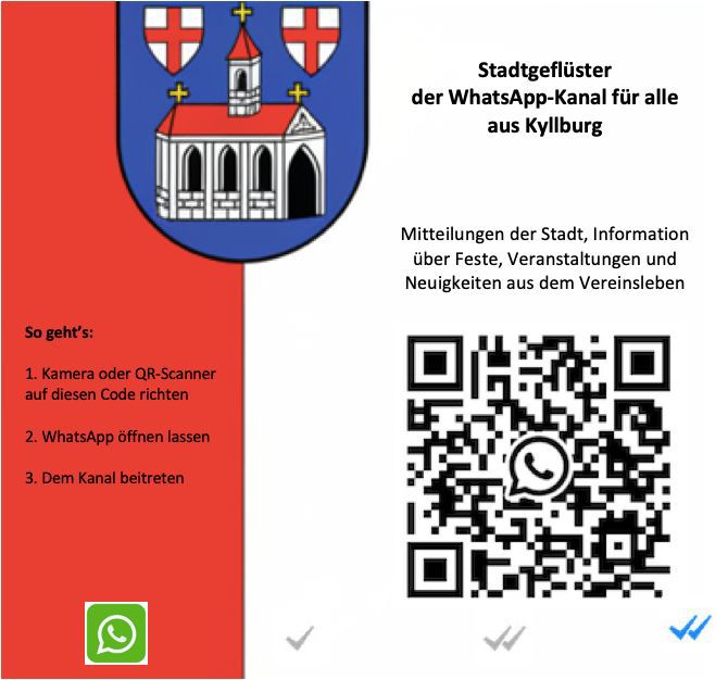 Über den Kanal erhaltet ihr weiterhin alle wichtigen Neuigkeiten, Termine, Veranstaltungen und öffentlichen Mitteilungen rund um Kyllburg.